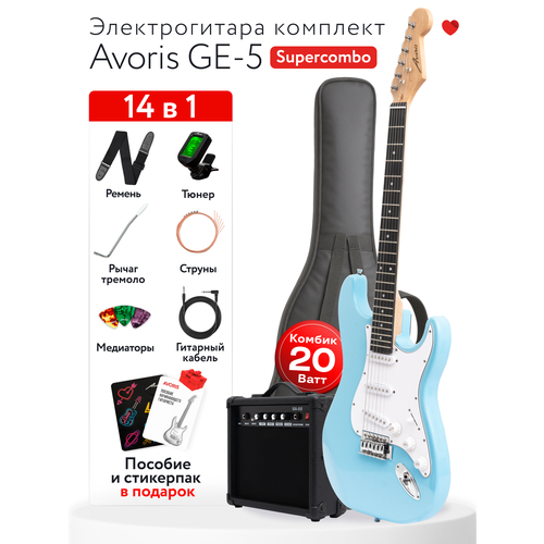 Купить Электрогитара Avoris GE-5 (Комплект SuperCombo 14 в 1), цвет Голубой с доставкой по всей России. Электрогитара Avoris GE-5 (Комплект SuperCombo 14 в 1), цвет Голубой: сравнение цен, характеристики, фото, актуальное наличие и цены.