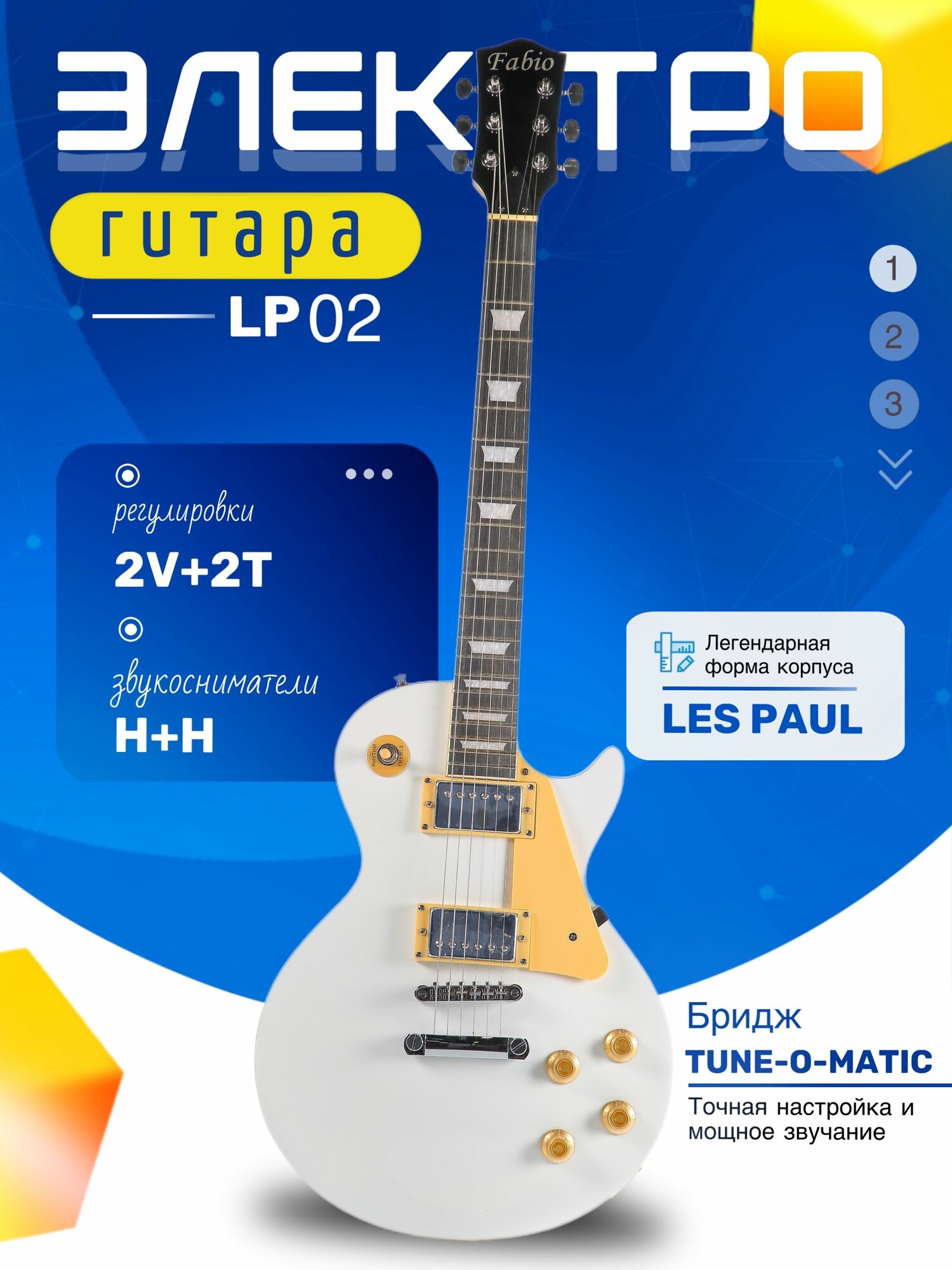 Купить Электрогитара для начинающих Les Paul 02 (H+H, 2V+2T) WH, Белая с доставкой по всей России. Электрогитара для начинающих Les Paul 02 (H+H, 2V+2T) WH, Белая: сравнение цен, характеристики, фото, актуальное наличие и цены.