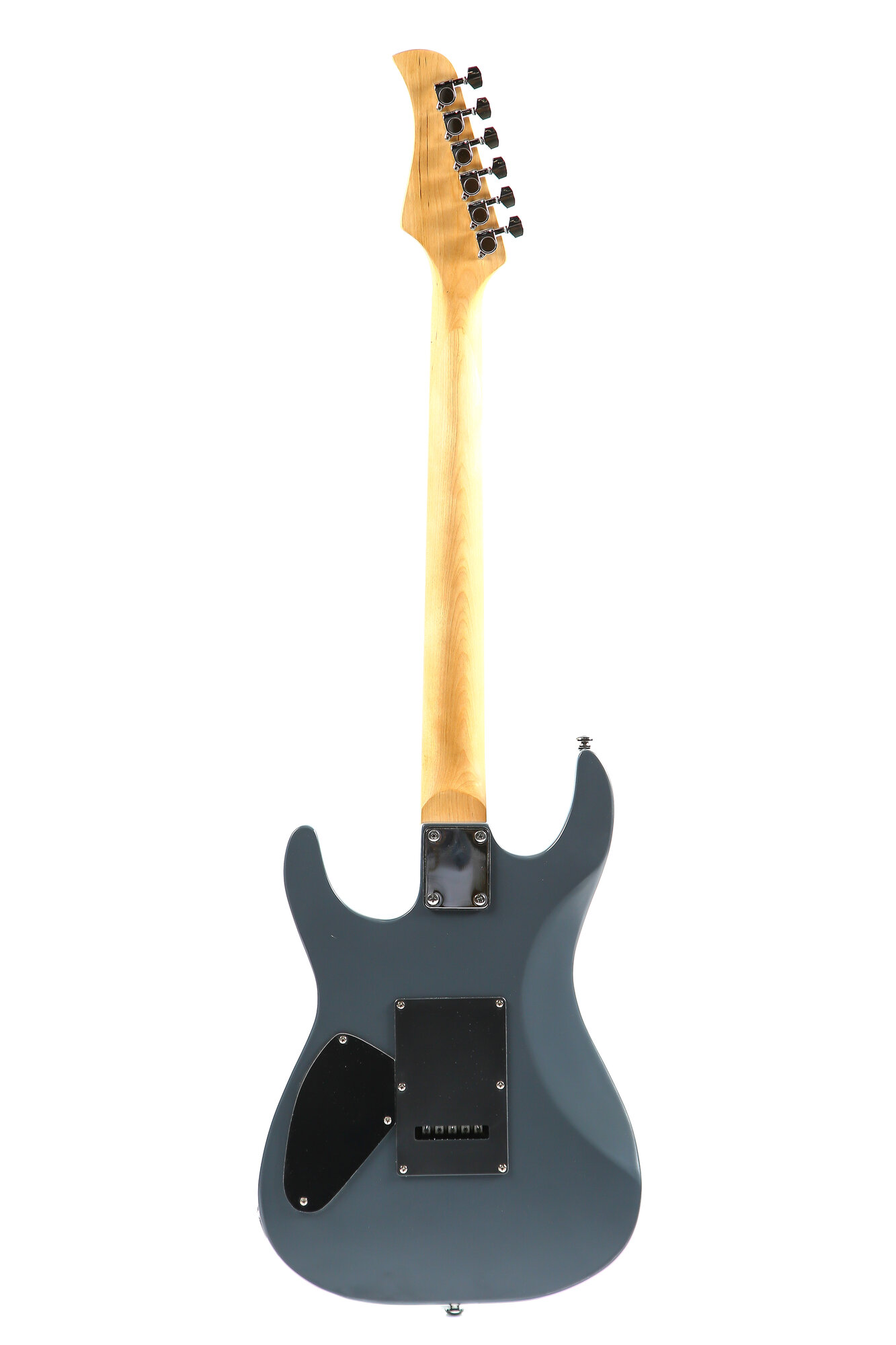 Электрогитара Fabio SS-07 MGRY (Н/S/H)Прекрасный инструмент для любителей рока и тяжелого металаЛегендарная и агрессивная форма суперстрат отлично впишется в брутальную команду любителей "heavy metal"Электрогитара имеет 3 звукоснимателя (Н/S/H)
