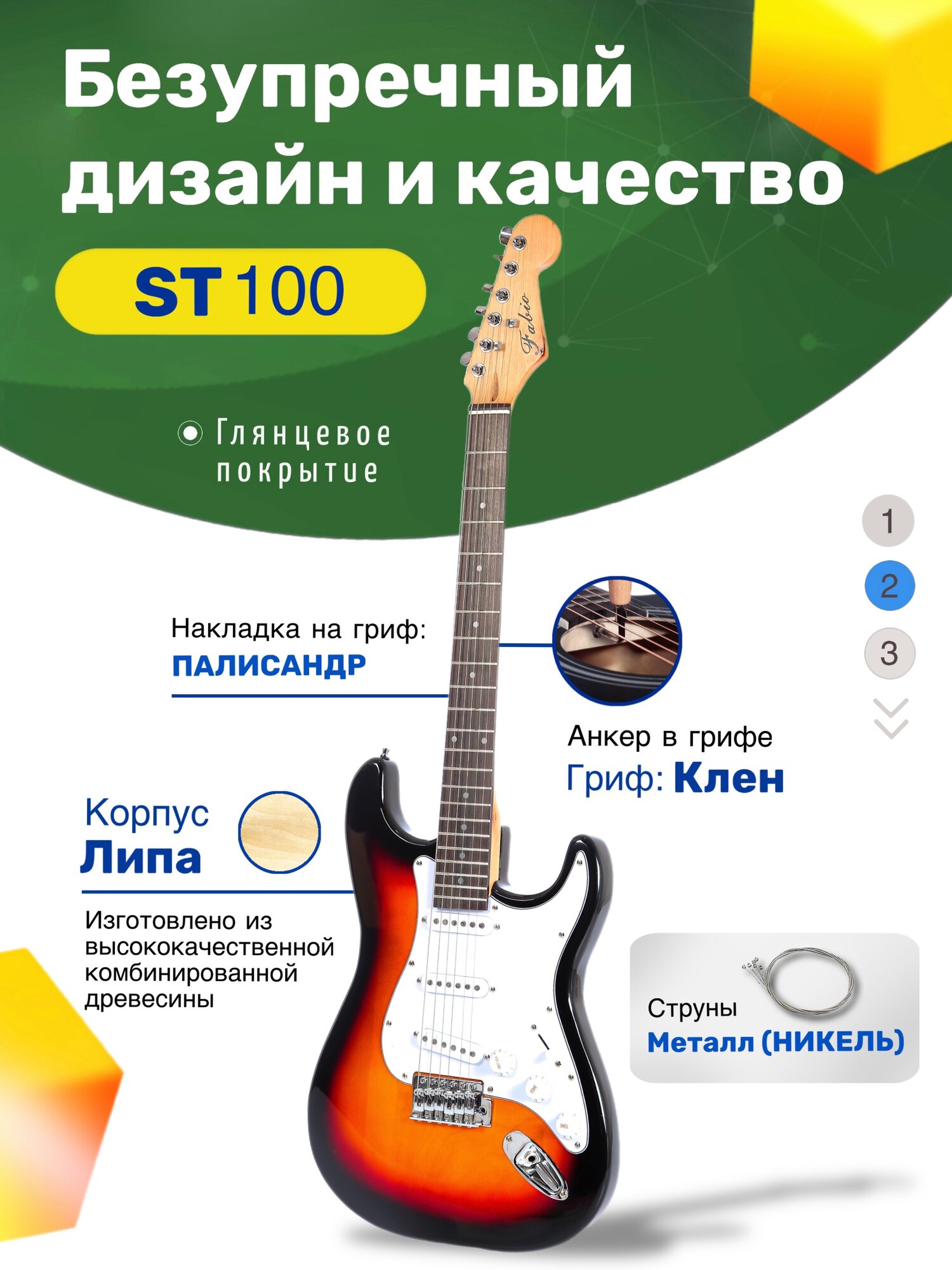 Электрогитара Fabio «ST100″, 6 струн, с бриджем тремоло, мензура 27», 22 лада: сравнение цен, характеристики, фото, актуальное наличие и цены.