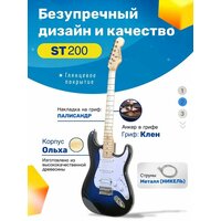Комплект электрогитары Stratocaster H-S-S ST200 - это не просто качественный музыкальный инструмент, это дверь в мир музыки. Корпус из липы, гриф из клена и накладка из Techwood создают идеальное сочетание прочности и стиля. Звукосниматели HSS с 5-ти позиционным переключателем позволяют создать как кристально чистые звуки, так и мощные риффы. Бридж с тремоло добавляет глубины и выразительности каждой ноте. С помощью регуляторов громкости и тона, а также переключателя звукоснимателей, Вы сможете легко настроить звучание под свой стиль и предпочтения. Но это еще не все! В комплекте Вы получите все необходимое для начала игры: комбоусилитель на 10 ватт, каподастр, чехол для безопасной переноски, удобный ремень, запасные 6 струн и провод для подключения длиной 3 метра. С таким набором Вы готовы к любым музыкальным открытиям