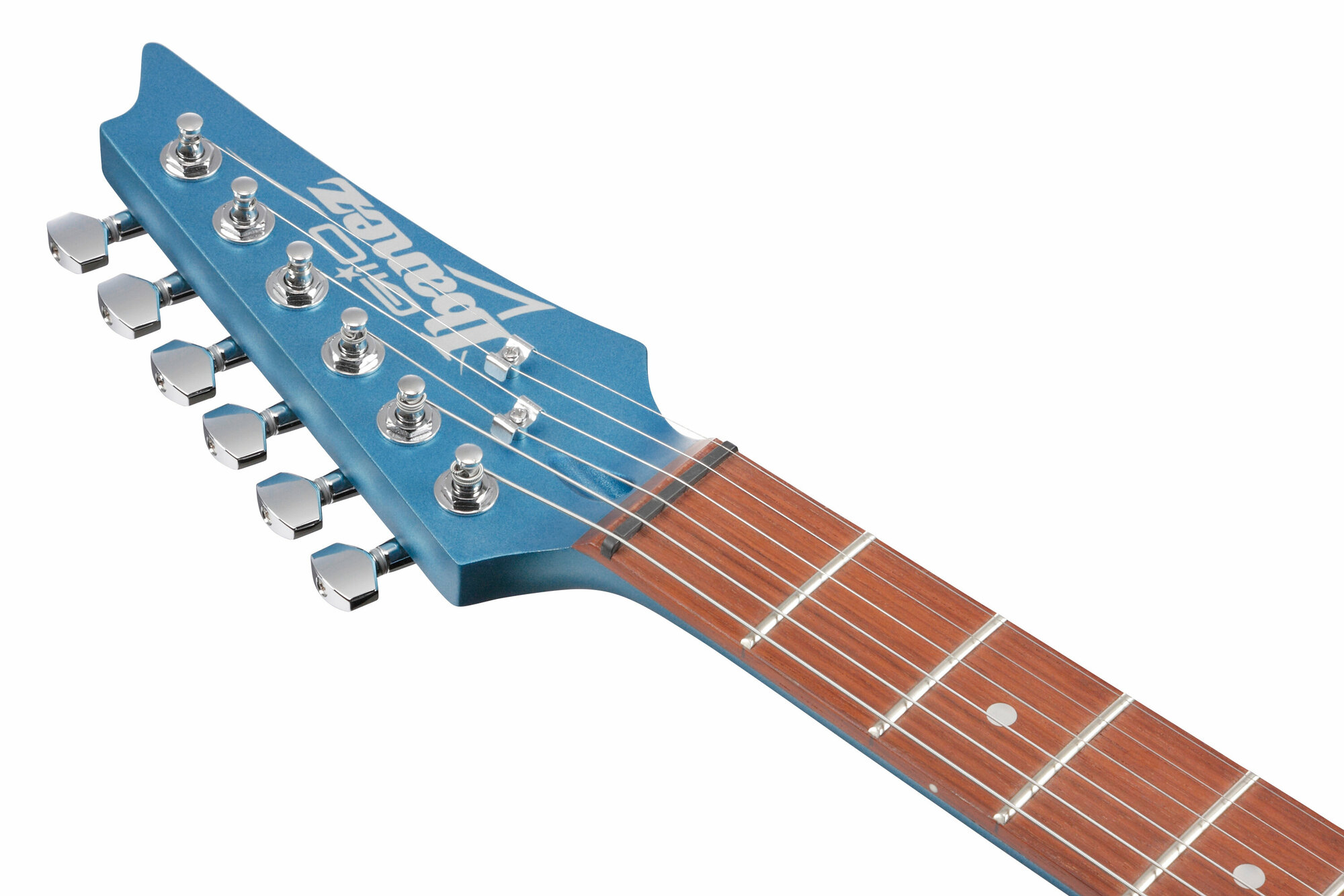 Шикарная гитара начального уровня с разнообразным звучанием Ibanez Gio GRX120SP-MLM Metallic Light Blue Matte - это первоклассная гитара начального уровня, которая не только привлекает внимание своим внешним видом, но и предлагает первоклассное управление и гибкие тона по удивительной цене. Классический дизайн RG с плоским кленовым грифом "GRX", полностью покрытым матовым металликом синего цвета, обещает легкую игру для первых риффов и мелодий. Пикапы Infinity R с универсальной схемой обеспечивают соответствующие тембры в гитарном усилителе. Наконец, надежные примочки в виде системы вибрато T106 и стабильных в настройке литых тюнеров дополняют матовую электрогитару Gio GRX120SP-MLM Metallic Light Blue от Ibanez. Электрогитара GRX из серии Ibanez Gio Светло-голубая матовая отделка Конструкция Bolt-On с длиной шкалы 25,5 дюйма (648 мм) корпус из тополя Кленовый гриф с болтами 22-ладовый гриф из ятобы с инкрустацией Dot "Профиль грифа "GRX Один керамический хамбакер Ibanez Infinity R в позиции грифа Один керамический хамбакер Ibanez Infinity R в бриджевой позиции 5-позиционный селекторный переключатель звукоснимателей, регуляторы громкости и тембра Система вибрато Ibanez T106 Машинные головки Ibanez Die-Cast В гитарном усилителе электрогитара Gio GRX120SP с двумя хамбакерами Ibanez Infinity R обеспечивает широкое разнообразие звучания, которое при желании может легко переместиться в царство горячего металла. Благодаря мощным керамическим магнитам, звукосниматели убеждают точной и мощной передачей каждой ноты, даже когда регулятор усиления усилителя установлен на максимум. Пассивная 5-полосная схема срегуляторами общей громкостии тона также позволяет точно настроить тембр.
