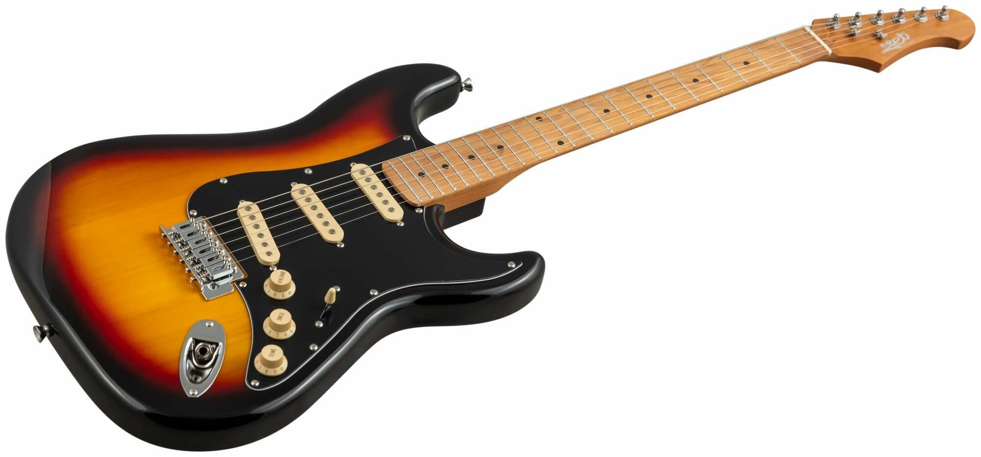 JET JS-200 это инструмент в классической и самой популярной форме корпуса - cтратокастер с конфигурацией звукоснимателей SSS. У инструментов JS-200 профиль грифа - Modern C. Это наиболее распространенный современный профиль грифа, у таких грифов удобный овальный профиль, который подходит для большинства стилей игры.