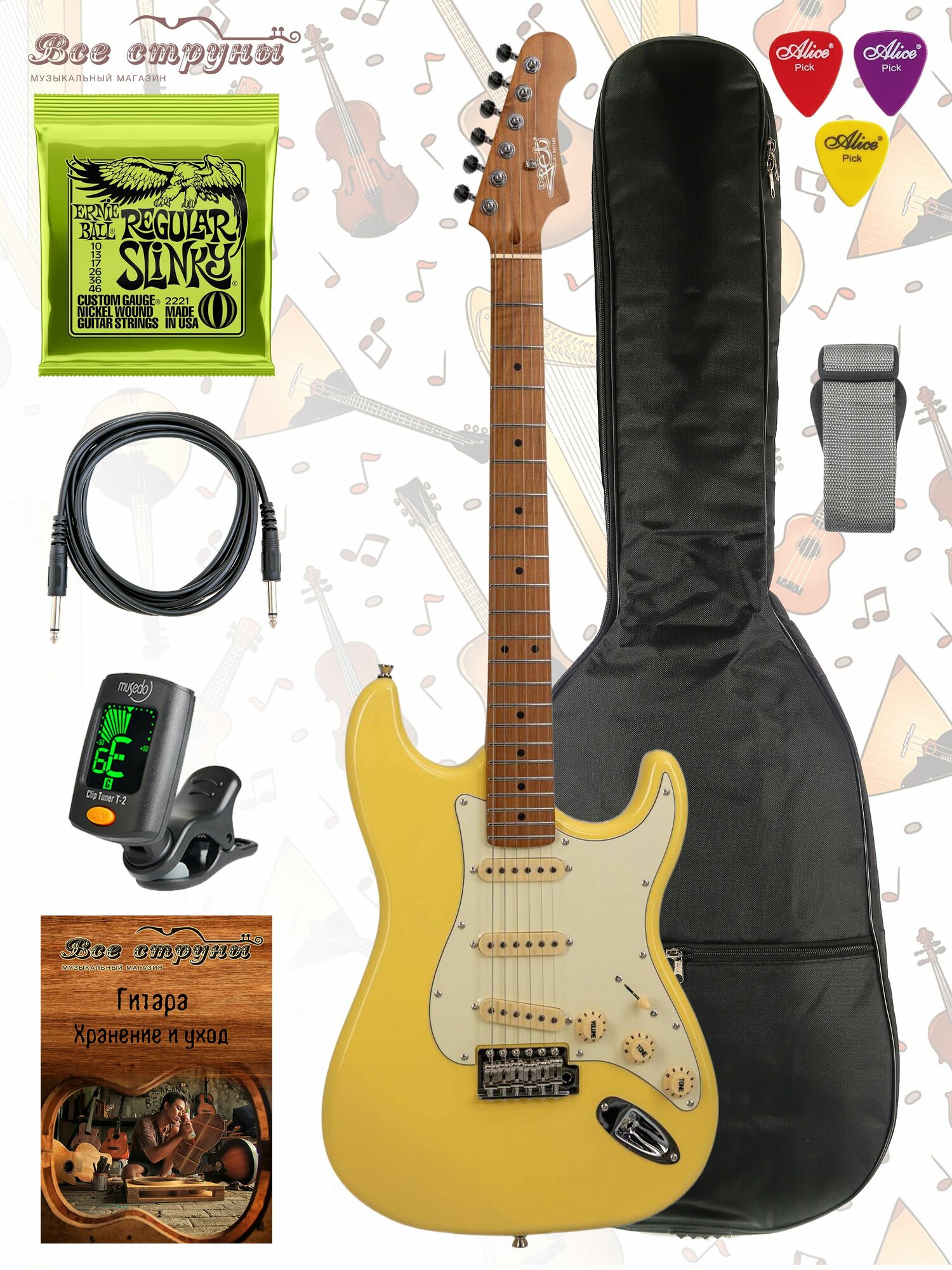JET JS-300 VYW это инструмент в классической и самой популярной форме корпуса - Стратокастер. У инструментов JS-300 профиль грифа - Modern C. Это наиболее распространенный современный профиль грифа, у таких грифов удобный овальный профиль, который подходит для большинства стилей игры.