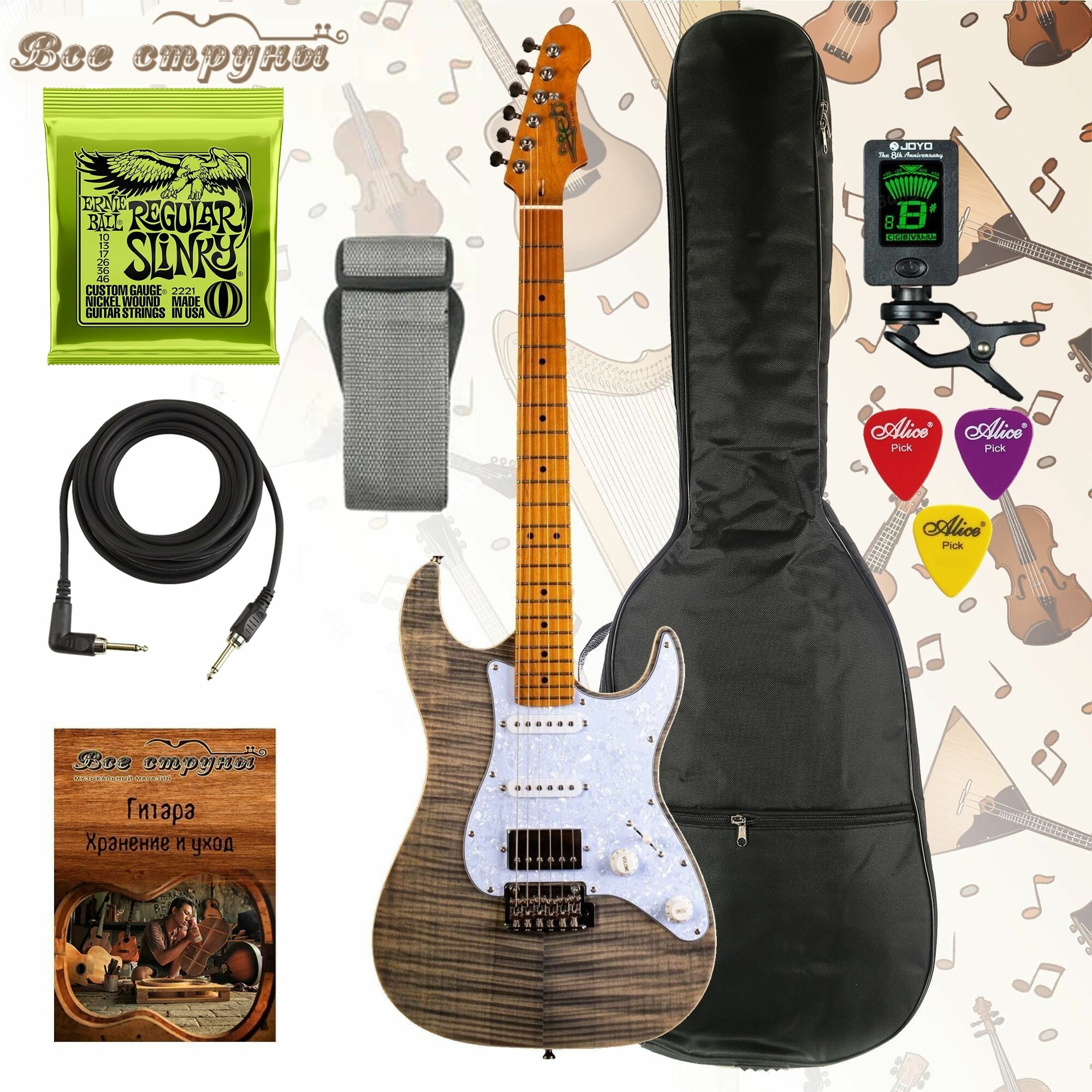 В комплекте с этой электрогитарой JET мы дарим вам американские струны ERNIE BALL 2221 Nickel Wound Slinky Regular самого популярного калибра 10-46.