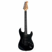 ROCKDALE Stars HT HSS – электрогитара с форм-фактором классического Стратокастера. Классическая для электрогитары форма корпуса, удобный гриф, оптимальная конфигурация звукоснимателей, надежный фиксированный бридж – ключевые составляющие для первого инструмента. Удобный корпус и гриф обеспечивают комфорт при игре сидя и стоя и для любого стиля музыки. Два звукоснимателя типа «сингл» и один «хамбакер» позволяют играть как на чистом звуке, так и перегруженном, а также с применением любых эффектов. Корпус и топ гитары из тополя. Фиксированный бридж (Hardtail) за счет большего пятна контакта с деревом обеспечивает лучший резонанс и сустейн, лучше держит строй лучше, проще и надежнее в работе, неприхотлив в обслуживании. Пятипозиционный переключатель режимов звукоснимателей позволяет получить разные оттенки звука. Гриф и накладка грифа из клена делают звучание ярким и характерным. Вся фурнитура гитары – колки, ретейнеры, ручки управления, гнездо подключения, бридж – также выполнены в стильном черном цвете.