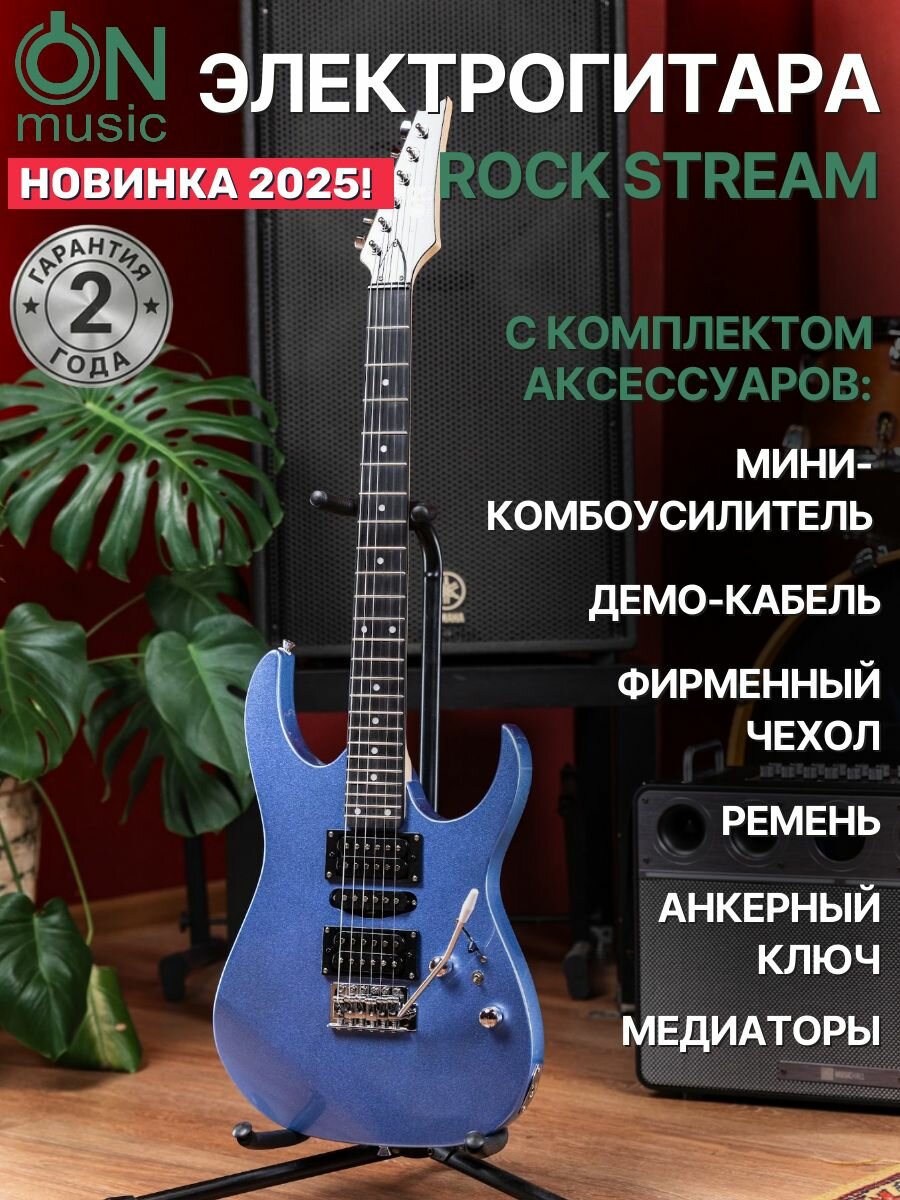 Купить Электрогитара с комплектом аксессуаров ON Music Rock Stream, синий с доставкой по всей России. Электрогитара с комплектом аксессуаров ON Music Rock Stream, синий: сравнение цен, характеристики, фото, актуальное наличие и цены.