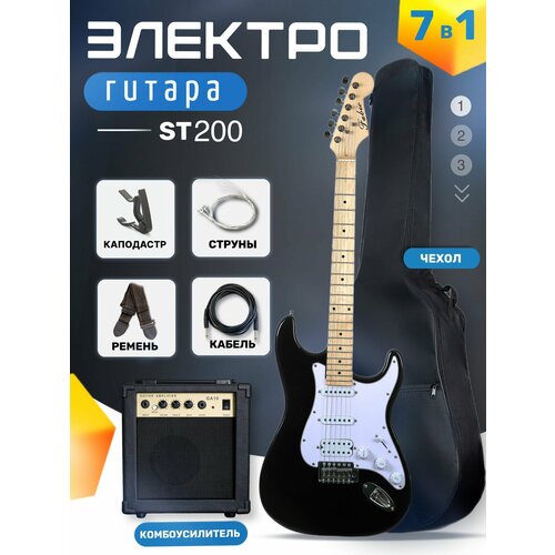 Электрогитара Stratocaster Чёрная Fabio ST100, Black S-S-S, 1V+2T (Набор электрогитары с комбоусилитем): сравнение цен, характеристики, фото, актуальное наличие и цены.