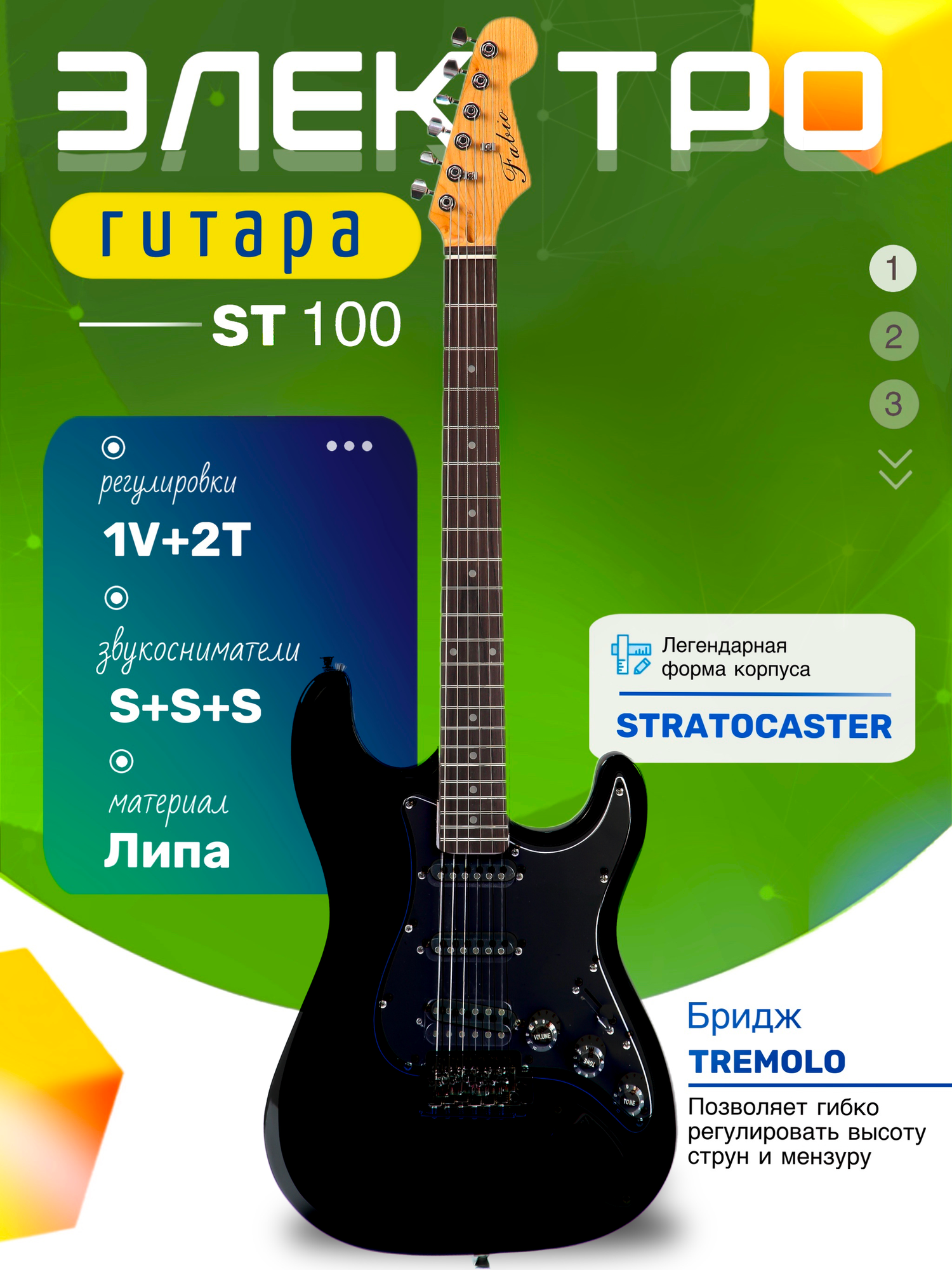 Купить Электрогитара Stratocaster Двойной чёрный Fabio ST100 Double BK S-S-S, 1V+2T (Электрогитара для начинающих) с доставкой по всей России.