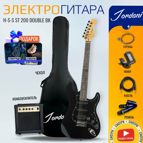 Электрогитара Stratocaster Fabio Двойной чёрный ST200 Double BK H+S+S, 1V+2T (Набор электрогитара с комбоусилителем)