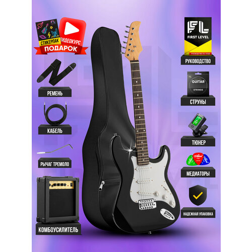 Купить Электрогитара Stratocaster Rocket с комплектом PREMIUM, черная с доставкой по всей России. Электрогитара Stratocaster Rocket с комплектом PREMIUM, черная: сравнение цен, характеристики, фото, актуальное наличие и цены.