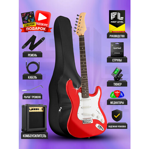 Купить Электрогитара Stratocaster Rocket с комплектом PREMIUM, красный с доставкой по всей России. Электрогитара Stratocaster Rocket с комплектом PREMIUM, красный: сравнение цен, характеристики, фото, актуальное наличие и цены.