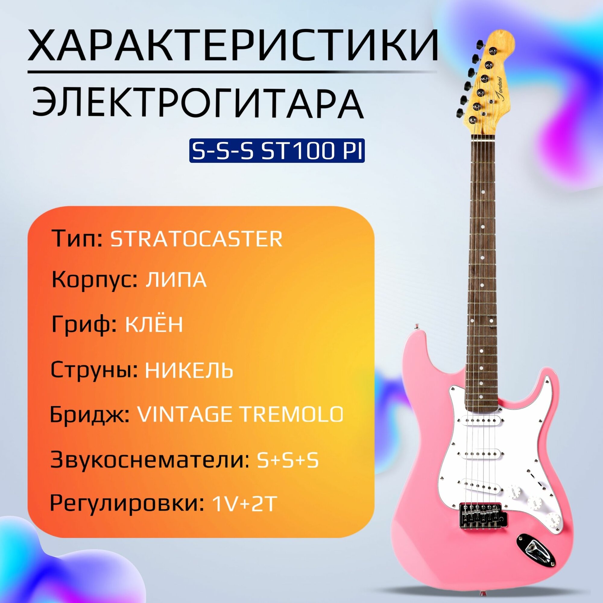 Электрогитара Stratocaster Розовая Fabio ST100, PI S-S-S, 1V+2T (Электрогитара для начинающих): сравнение цен, характеристики, фото, актуальное наличие и цены.