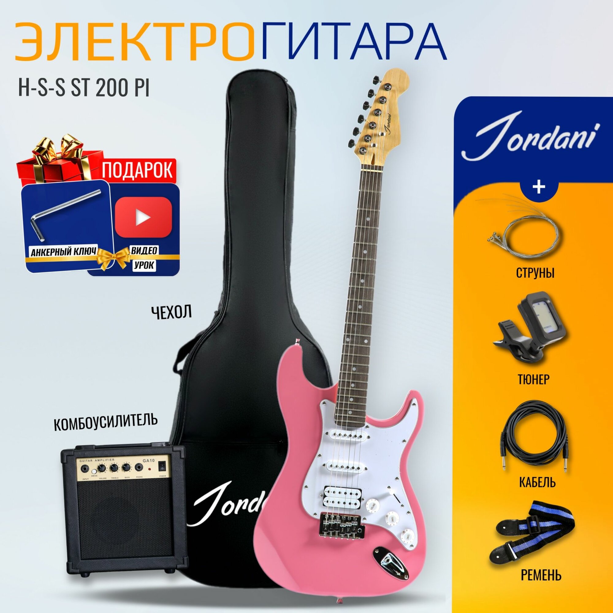 Электрогитара Stratocaster Розовая Fabio ST200, PI H+S+S, 1V+2T (Набор электрогитара с комбоусилителем): сравнение цен, характеристики, фото, актуальное наличие и цены.