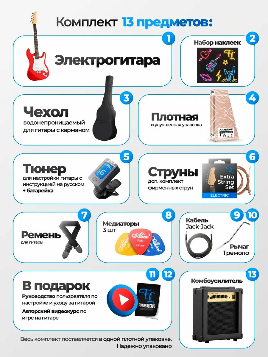 Купить Электрогитара Stratocaster с комплектом PREMIUM с доставкой по всей России. Электрогитара Stratocaster с комплектом PREMIUM: сравнение цен, характеристики, фото, актуальное наличие и цены.