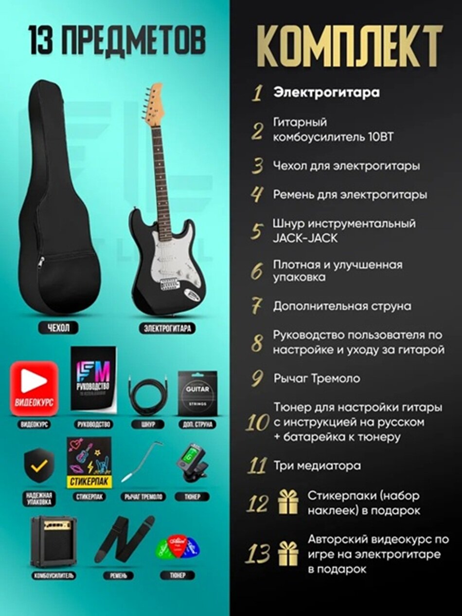 Электрогитара для начинающих Stratocaster, с полным комплектом, цвет Санберст: сравнение цен, характеристики, фото, актуальное наличие и цены.