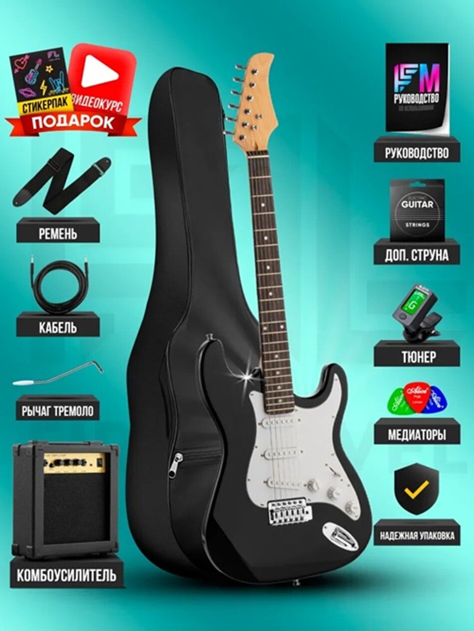 Купить Электрогитара для начинающих Stratocaster, с полным комплектом, цвет Санберст с доставкой по всей России.
