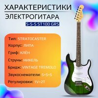 Электрогитара Stratocaster Зелёная Fabio ST100, GRS S-S-S, 1V+2T (Электрогитара для начинающих): сравнение цен, характеристики, фото, актуальное наличие и цены.