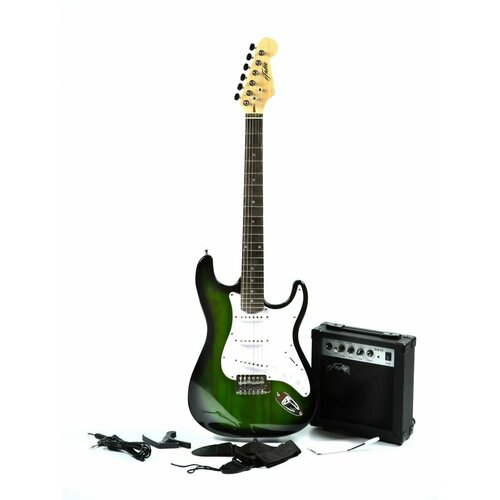 Электрогитара Stratocaster Зелёная Fabio ST100 GRS S-S-S, 1V+2T (Набор электрогитары с комбоусилитем): сравнение цен, характеристики, фото, актуальное наличие и цены.