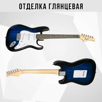 Электрогитара имеет стильный и узнаваемый дизайн в стиле Stratocaster, который подойдет для игры в любом жанре музыки. Корпус гитары выполнен из липы, что обеспечивает легкость и прочность инструмента. Гриф из клена и накладка из палисандра обеспечивают комфортную игру на электрогитаре в течение долгого времени.