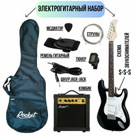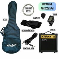 Добро пожаловать в мир электрогитар! Представляем вам ROCKET PACK-1 - комплект для гитаристов, включающий в себя электрогитару, аксессуары и гитарный комбик.