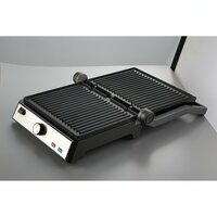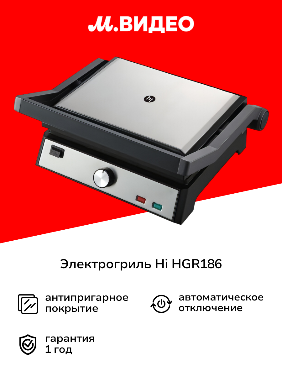 Термометр; Термостат; Звуковая индикация готовности; Световая индикация достижения заданного нагрева; Индикация готовности к работе; Установка времени приготовления; Ручки с защитой от жара; Термоизолированный корпус; Защита от детей; Съемные формы; Рифленая пластина для гриля; Ручка для переноски; Раскрытие на 180°; Прорезиненные ножки; Программы приготовления: ручной режим