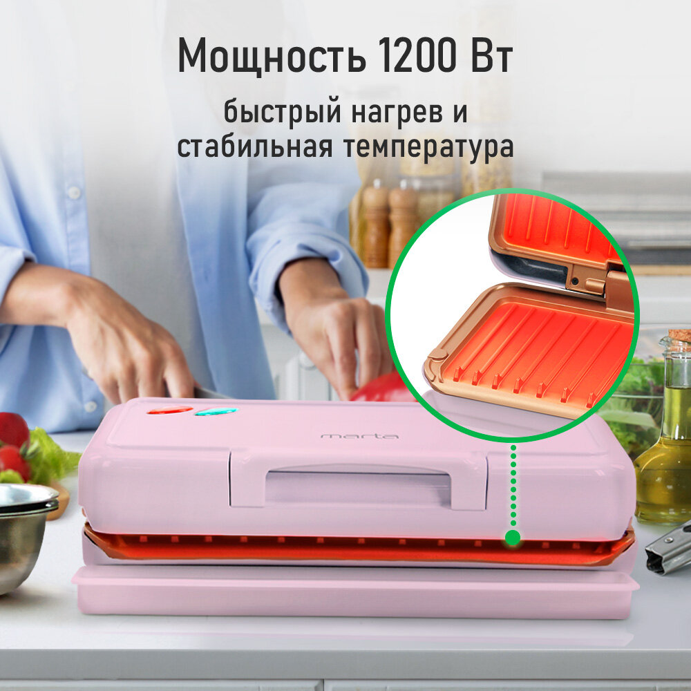 Электрогриль MARTA MT-SM1743A, розовый, опаловый, с поддоном для жира, антипригарный, 1200 Вт: сравнение цен, характеристики, фото, актуальное наличие и цены.