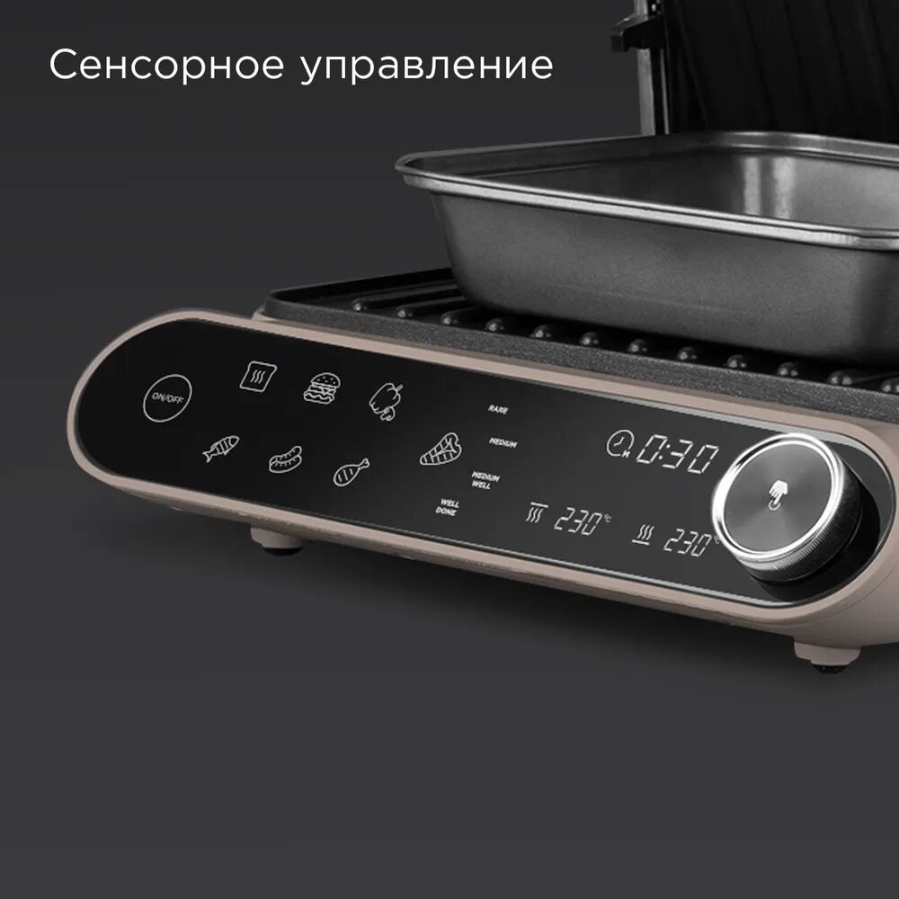 | Особенности | антипригарное покрытие, поддон для сбора жира, регулировка высоты верхней панели, съемные пластины |