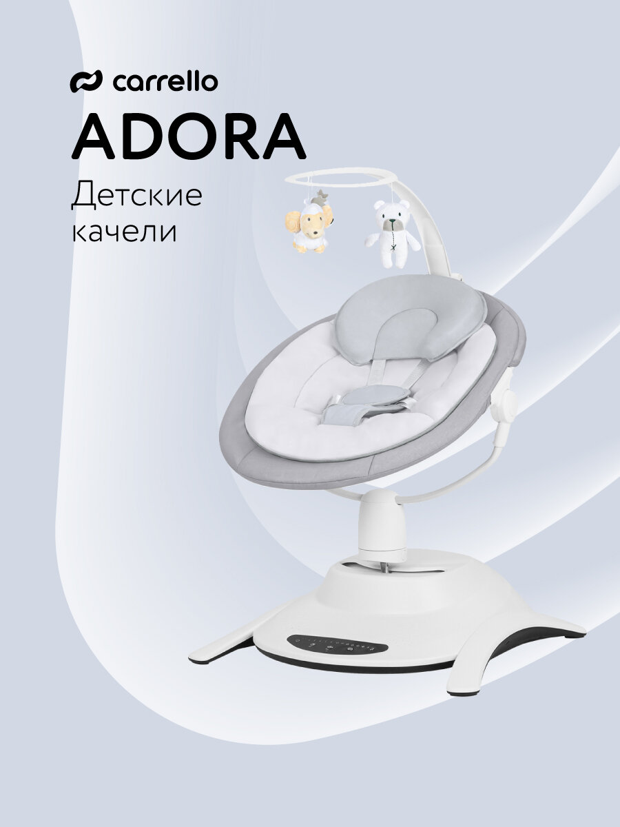 Carrello Adora имеет 6 режимов укачивания. Их интенсивность и вид можно настраивать самостоятельно или выбрать автоматический вариант, который будет менять режимы каждые 16 секунд. Ночью же качели медленно замедляются до полной остановки. Во время бодрствования новорожденного будет развлекать карусель с 3 игрушками, её положение можно менять и настраивать под ребёнка.