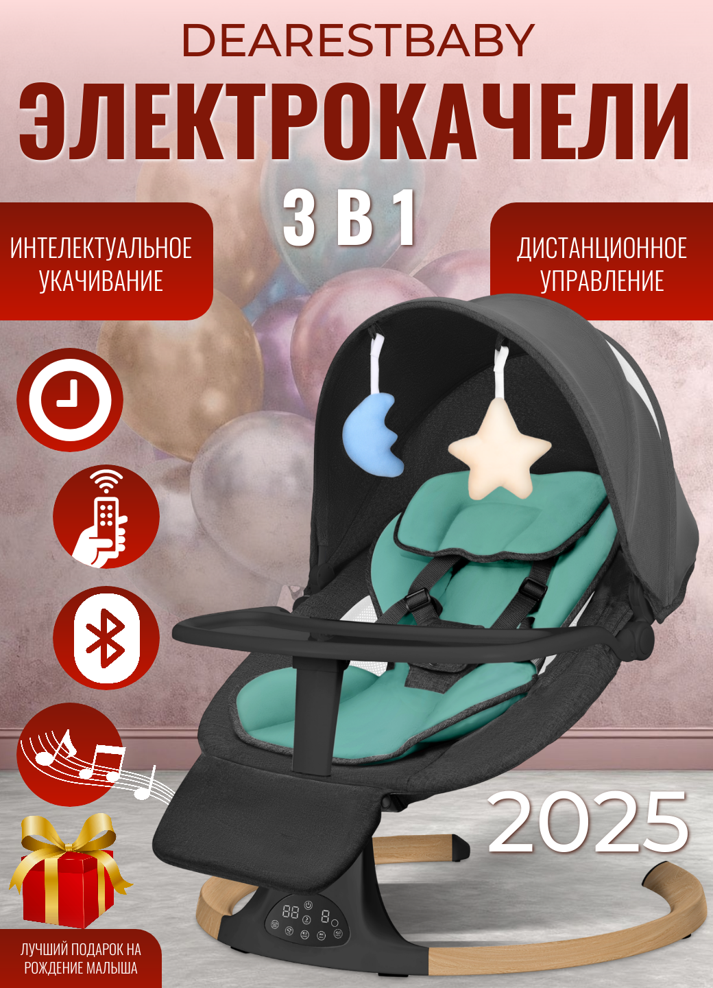 Электрокачели для новорожденных Dearest Wood Deluxe 3в1, умные электрокачели шезлонг с цифровым дисплеем, с Bluetooth: сравнение цен, характеристики, фото, актуальное наличие и цены.