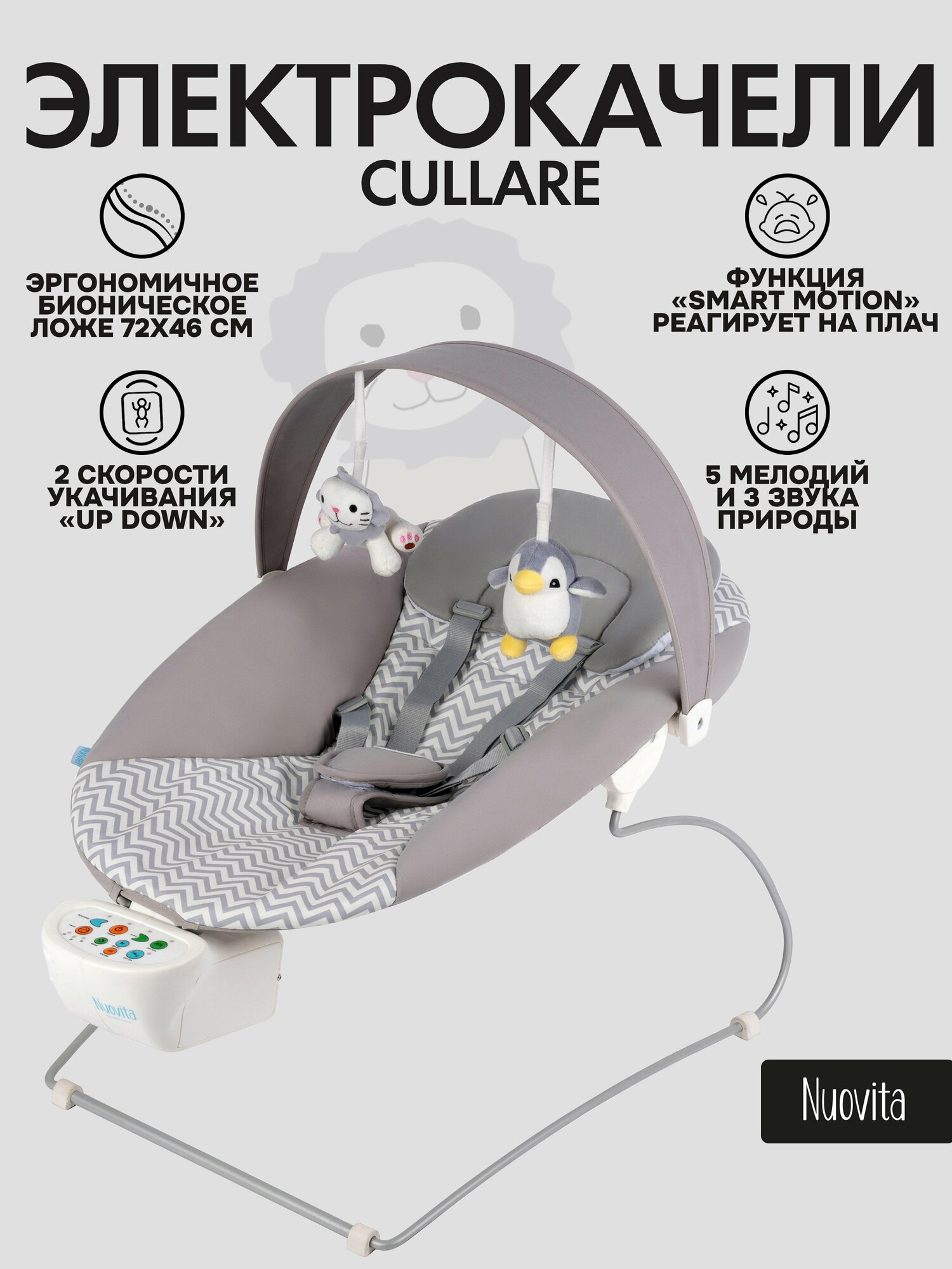 Купить Электрокачели Nuovita Meandro Cullare, работа от батареек, таймер укачивания с доставкой по всей России.