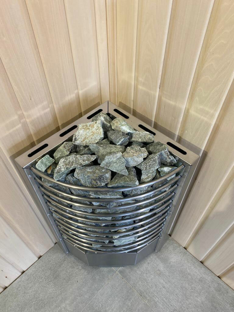 Открытая конструкция с высокой загрузкой камня (дает возможность согреваться от камня, получая мягкое тепло),