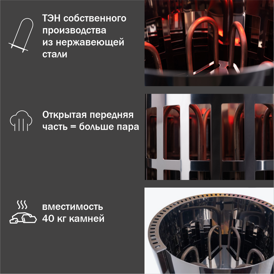 Электрокаменка УМТ Сфера ЭКМ 4,5 кВт (380/220 В, без пульта, нержавеющая сталь): сравнение цен, характеристики, фото, актуальное наличие и цены.