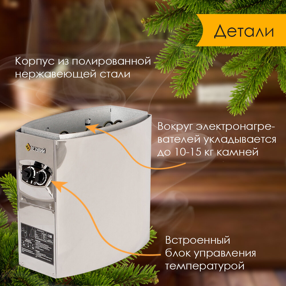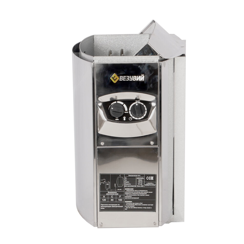 везувий wega-80 удобная, практичная, электрокаменка, которая поможет создать сауну или баню в доме или коттедже. работа устройства происходит путем нагрева камней, которые помещаются внутрь корпуса, между нагревателями. для повышения влажности в парильной комнате, камни можно поливать водой. кроме того, очень важно обеспечить поступление свежего уличного воздуха для вентиляции помещения, не менее чем 6 раз за 60 минут.