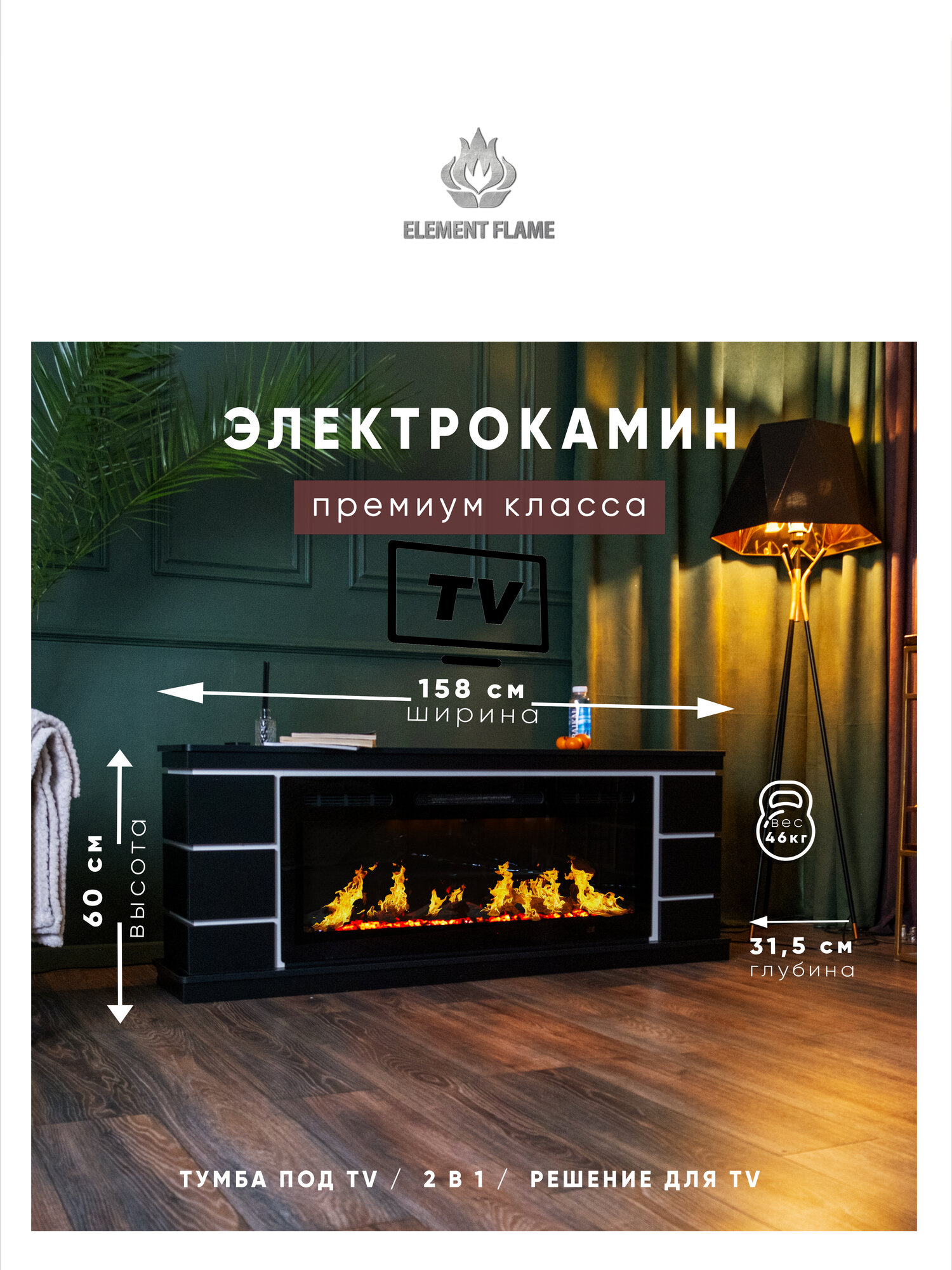 НОВИНКА 2025. Премиальная модель камина Silverado Quattroporte 1600, с премиальным электрическим камином от бренда ELEMENT FLAME - Kaiser boxster 1000.