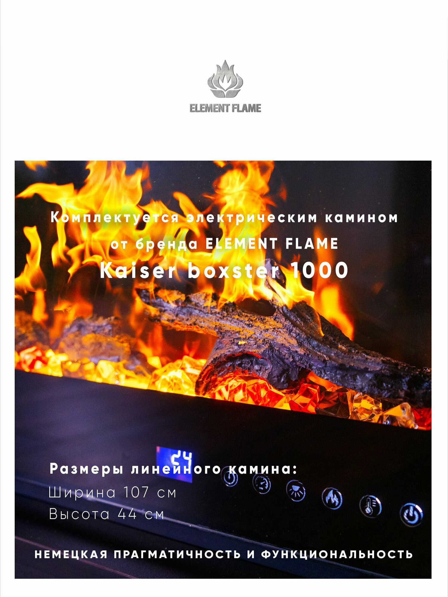 Комплектуется электрическим камином от бренда ELEMENT FLAME - Kaiser boxster 1000: