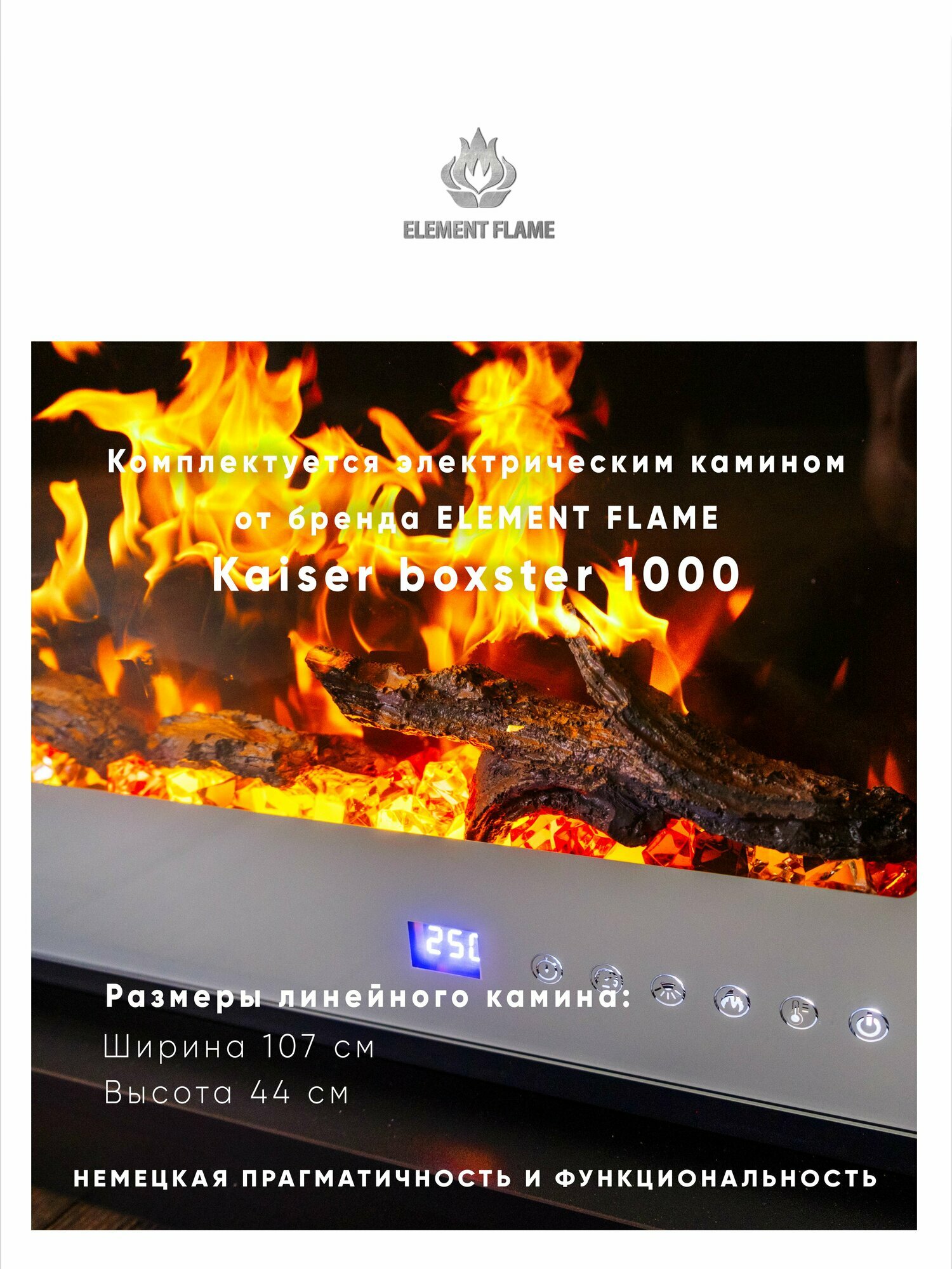 Комплектуется электрическим камином от бренда ELEMENT FLAME - Kaiser boxster 1000: