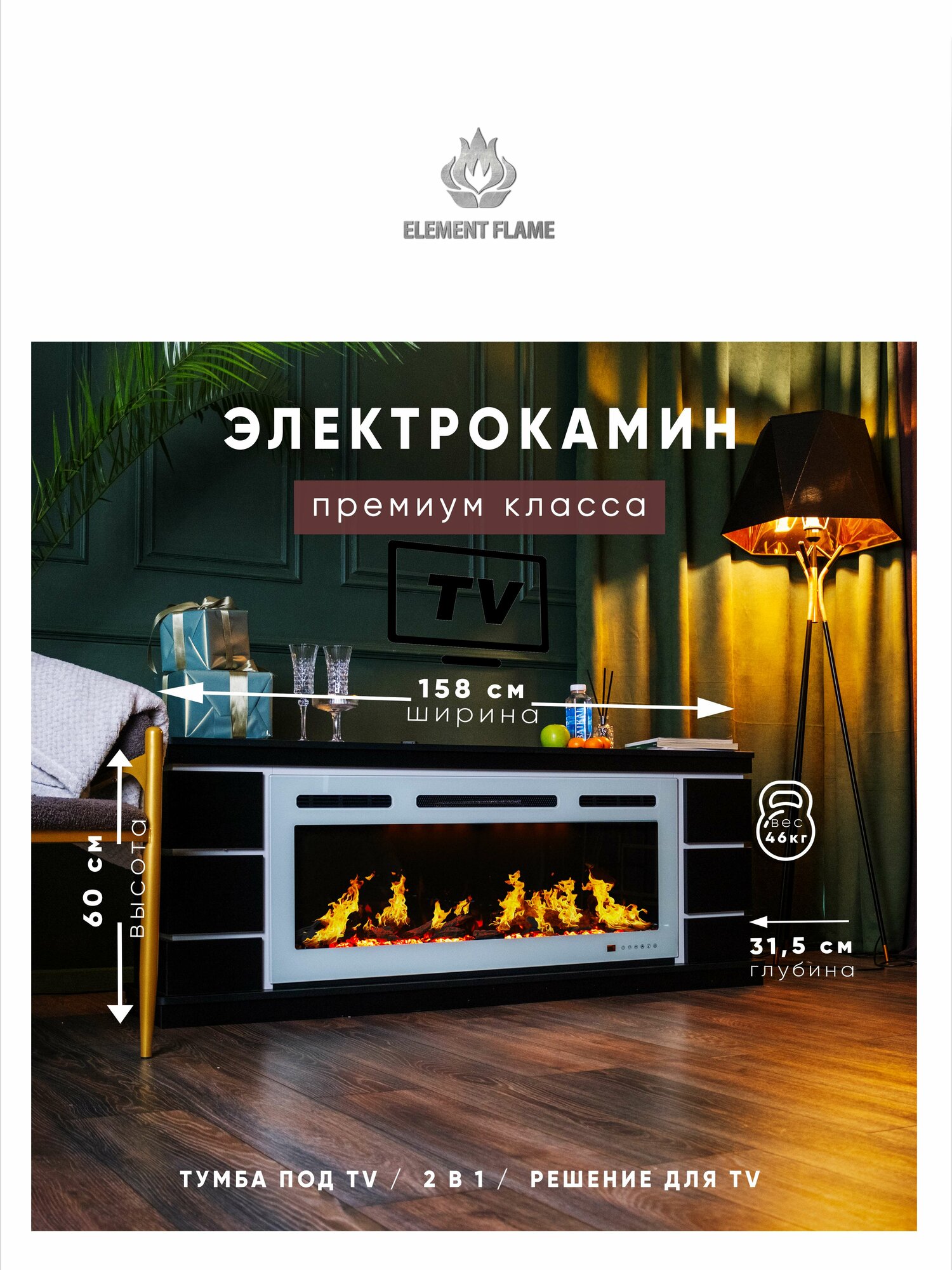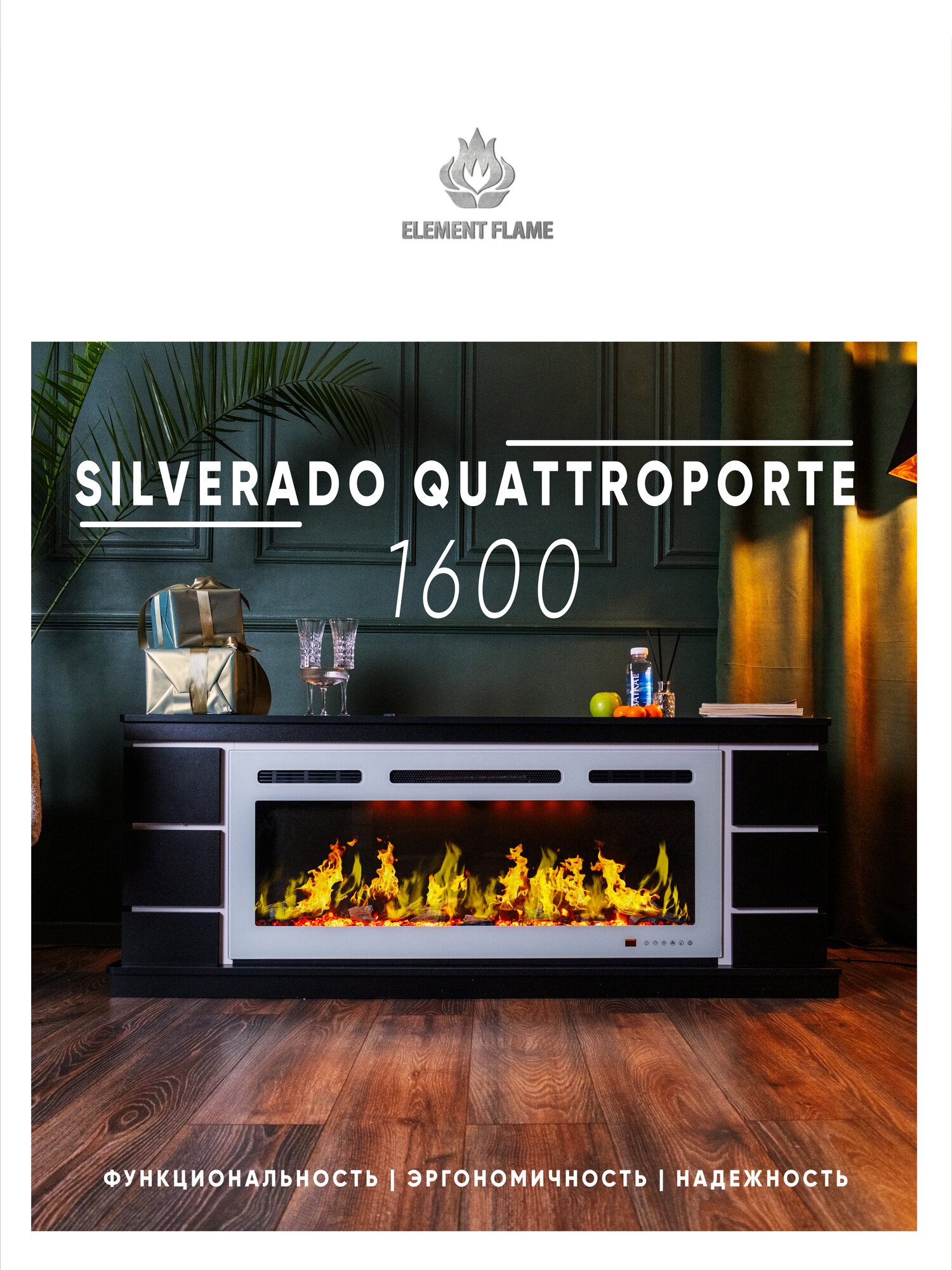 Новинка 2025. Премиальная модель камина Silverado Quattroporte 1600, с премиальным электрическим камином от бренда ELEMENT FLAME - Kaiser boxster 1000.