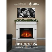 Электрокамин Fires Merlin Линдос 24, белый, с пультом ДУ, звуковой эффект