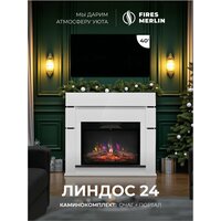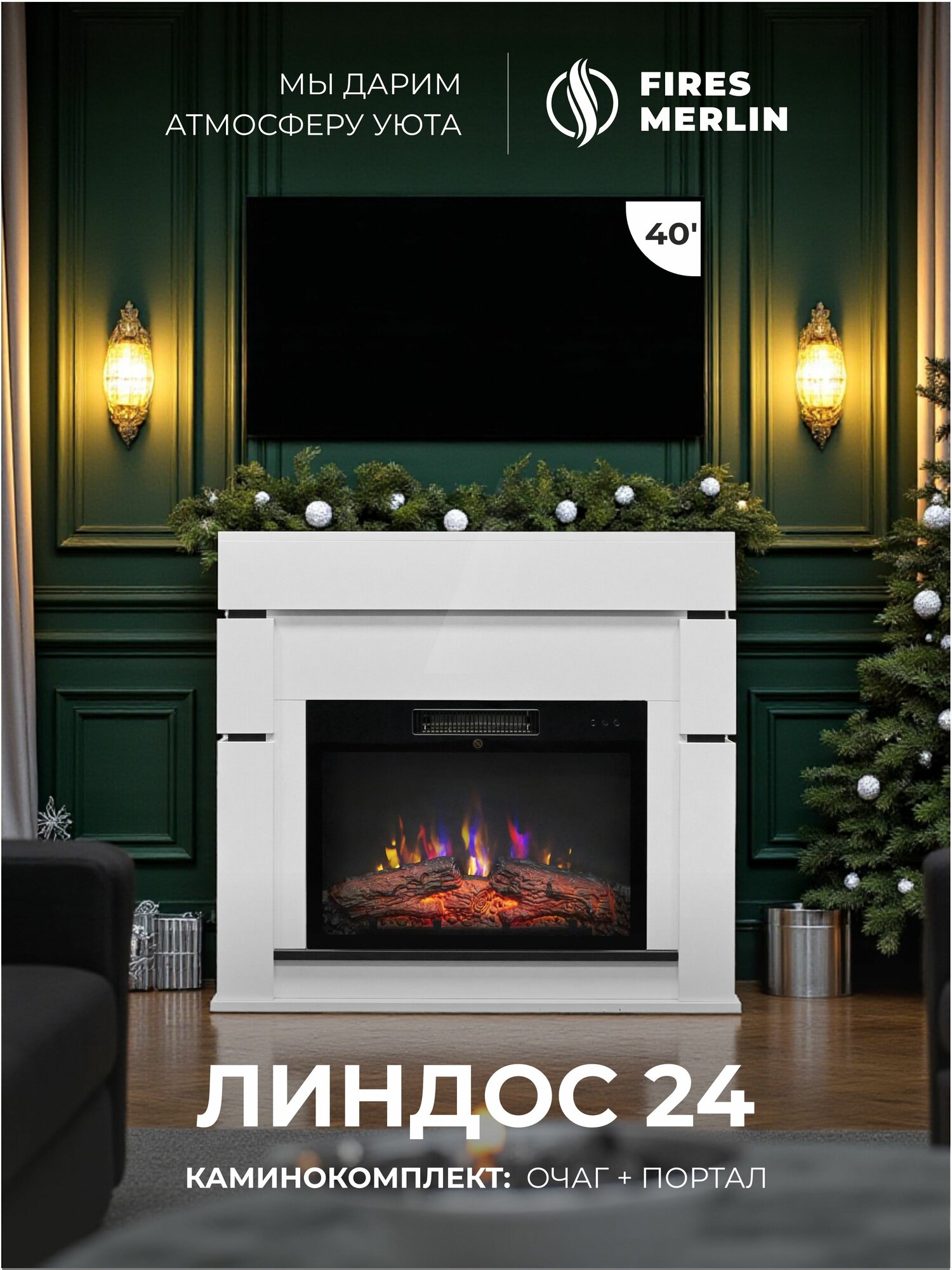 Электрокамин Fires Merlin Линдос 24, белый, с пультом ДУ, звуковой эффект: сравнение цен, характеристики, фото, актуальное наличие и цены.