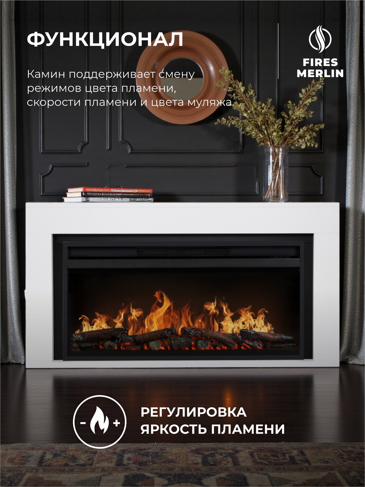 Электрокамин Fires Merlin Нэнси 36 WT с очагом, напольный камин с реалистичным эффектом пламени