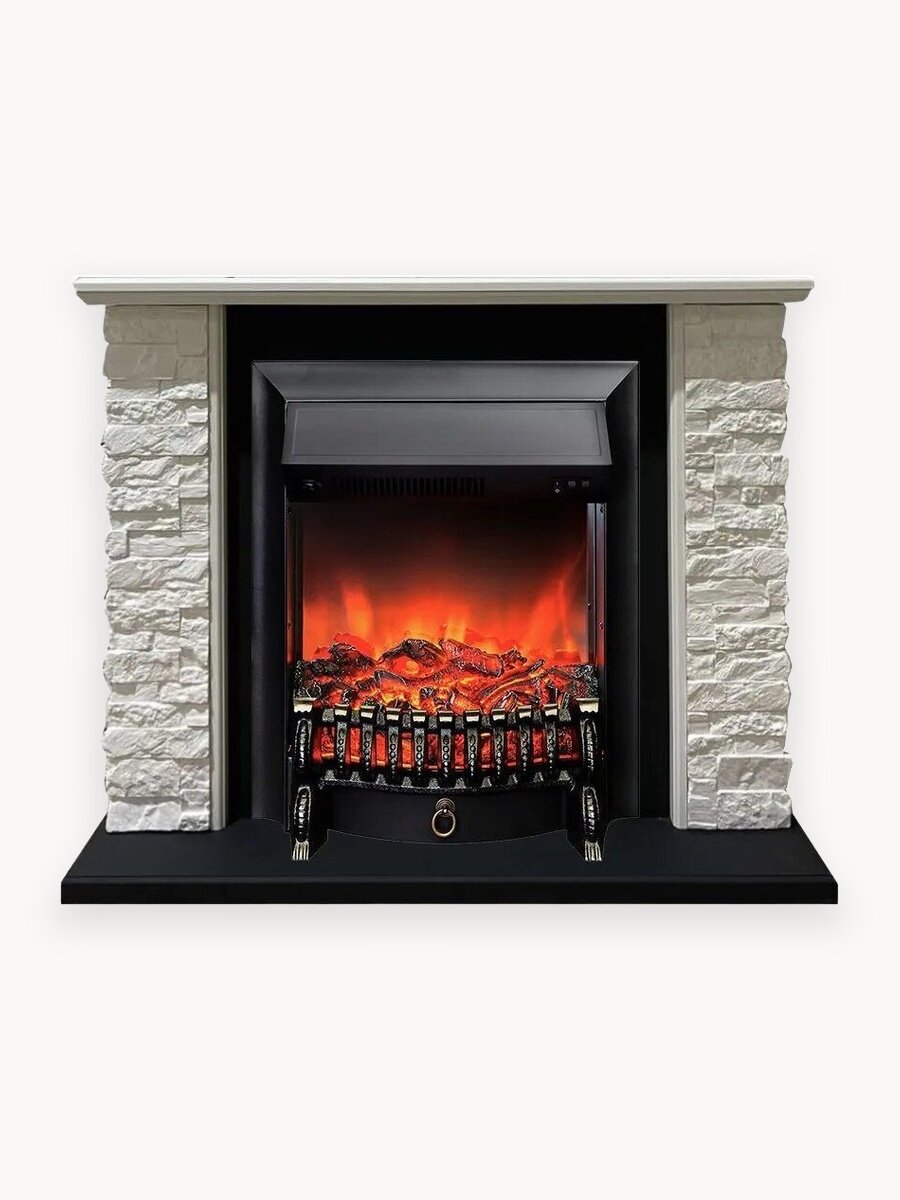Электрокамин Кимберли WT-DK M2 с очагом Fobos изготовлен из МДФ и искусственного камня. МДФ в цвете белый с чёрным. Искусственный камень белого цвета. Столешница и боковины камина изготовлены в белом цвете, а подиум в чёрном цвете. Каминокомплект с такой облицовкой будет прекрасно смотреться как в городском интерьере квартиры или дома, так и в загородном доме или даче. Портал из камня с видом под старину подчеркнёт аристократический стиль дома. Портал укомплектован классическим электроочагом Fobos. В очаге визуальный эффект горящего огня создается с помощью проекционной LED-технологии. Присутствует звуковой эффект горения пламени и потрескивания дров. Электрокамин может работать как в режиме обогрева, так и в декоративном режиме без обогрева. В режиме обогрева в электрокамине предусмотрено 2 уровня регулировки обогрева, возможно переключение мощности обогрева 750-1500 Вт, поэтому в холодные дни данный электрокамин можно использовать как дополнительный источник тепла. Предусмотрена функция защиты от перегрева. Основные характеристики электрокамина: • Размер (ВxШxГ): 730х900х315 мм • Материал: МДФ, искусственный камень • Цвет: МДФ в цвете белый с чёрным, искусственный камень белого цвета • Тип камина: фронтальный • Очаг: Fobos • Простая установка • Проекционная технология пламени • Есть звуковой эффект потрескивания дров • 2 режима обогрева • Мощность обогрева: 750-1500 Вт • Площадь обогрева до 25 кв. м. • Защита от перегрева • Декоративный режим Комплектация: 1) каминный портал (обрамление для очага); 2) электрический очаг Fobos; 3) инструкция, документация.