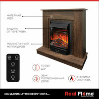 Электрокамин Флора коричневый с очагом Majestic, звук потрескивания дров, обогрев, имитация пламени, пульт