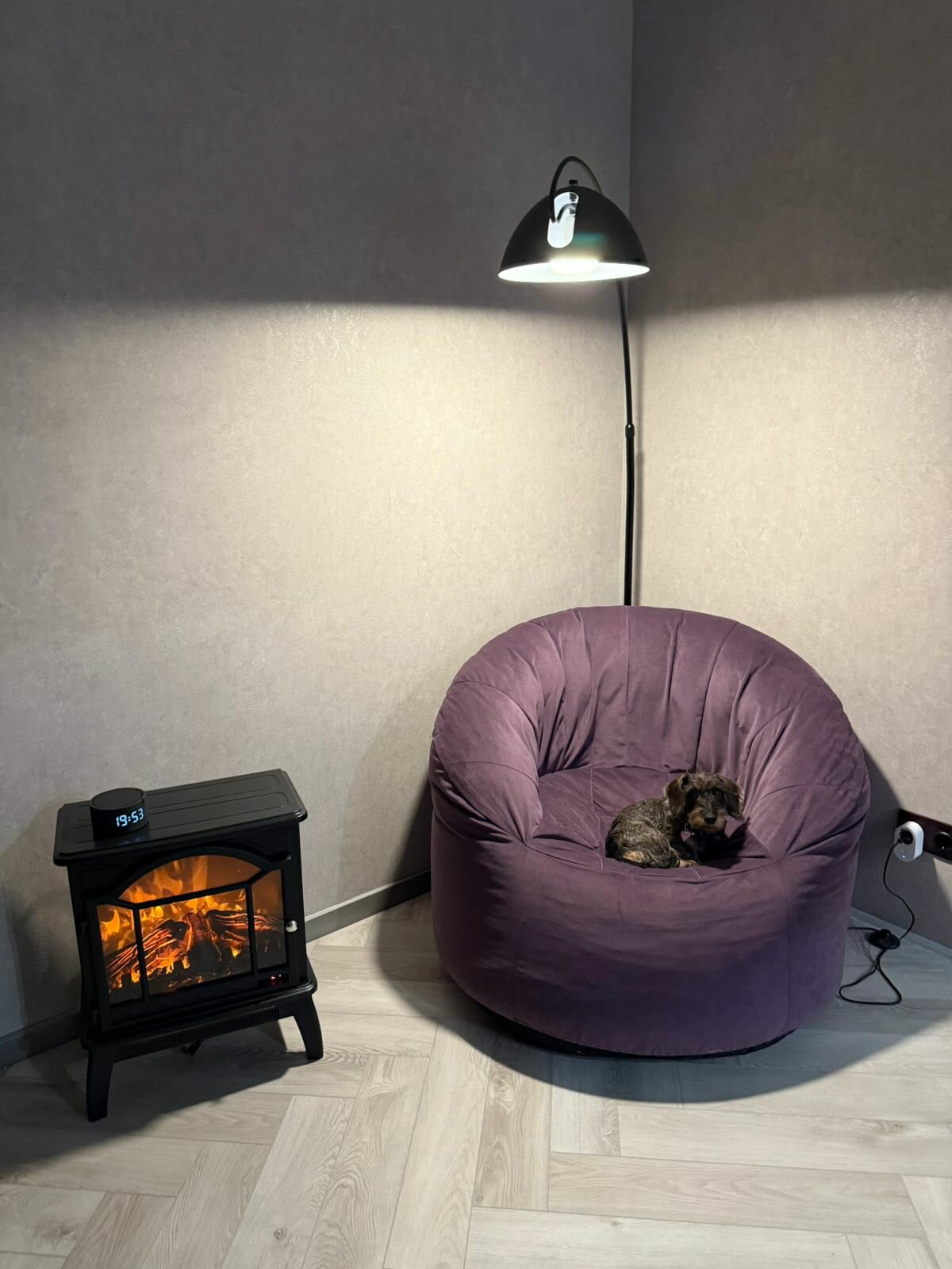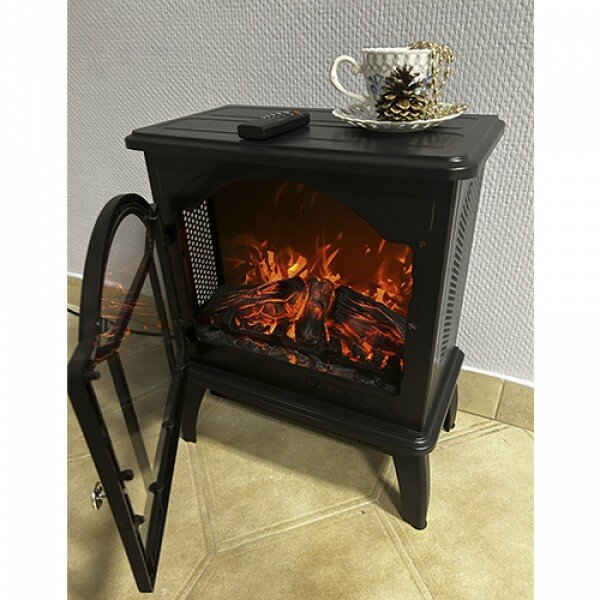 дистанционное управление, работа от сети, эффект живого огня