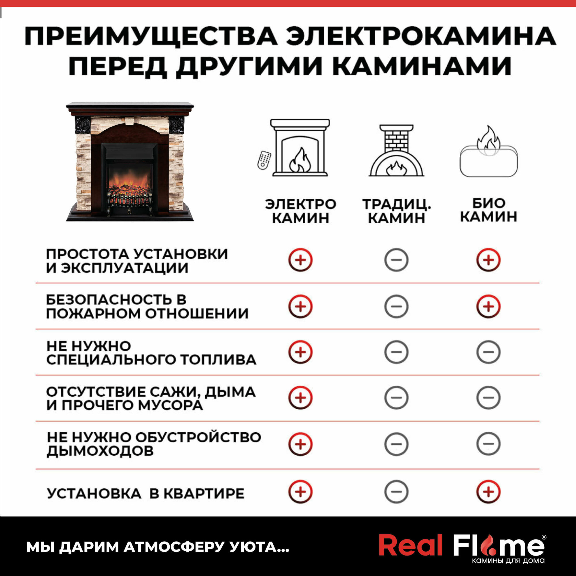 Наши Электрокамин RealFlame напольные и встраиваемые, что позволяет подобрать нужный вариант идеально подходящий для Вашего интерьера. Они представлены в разных стилях, включая классические и современные, так что Вы легко найдёте подходящий для своего дома. Очаг электрический для камина, защищенный от огня, безопасен для детей и животных. Вы сможете наслаждаться эффектом горящих дров и теплоты камина без забот о безопасности. Наши Электрокамин RealFlame – это не просто камины, но и неотъемлемый элемент декора для Вашего интерьера. Они не требуют топлива и очень легки в управлении, что делает их удобными в использовании. Все любители уюта и комфорта могут оценить большой выбор каминов. Если Вы хотите создать атмосферу уюта и комфорта в своем доме, обратитесь к нам! Оставайтесь в тепле и наслаждайтесь мгновениями уюта вместе с RealFlame.