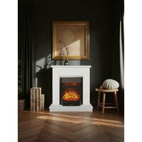 Электрокамин Fires Merlin Nord L белый напольный с очагом, звук потрескивания дров, обогрев, имитация пламени.