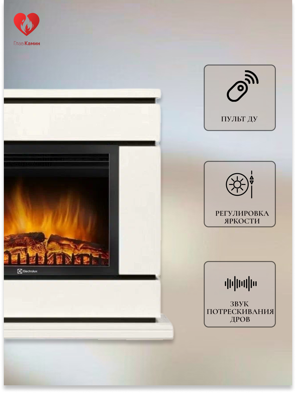 Купить Электрокамин Vega BG с очагом Electrolux EFP/P-2520LS с доставкой по всей России.