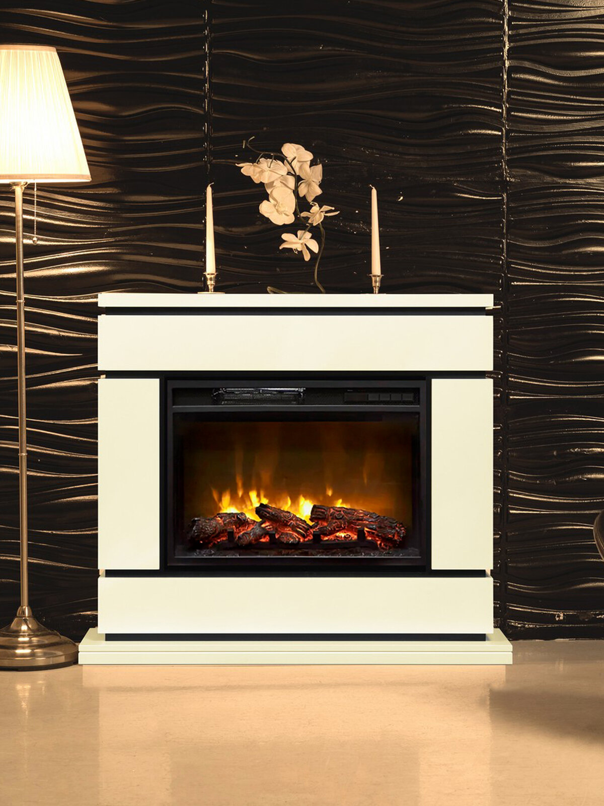 Камин электрический Majestic с белым порталом VITAMIN и пультом ДУ 67х26х79