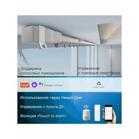 Приобретая электро карниз, в Вашем доме станет на одно умное устройство больше. Вы получаете комфортную защиту от солнечного света, которой можно управлять не вставая с дивана, а просто нажать на кнопку пульта, который идет в комплекте или дать команду голосовому помощнику. Вы можете установить таймер открытия и закрытия штор через приложение Tuya Smart или Smart Life в смартфоне и умный электрический карниз сделает все за Вас. Возможна синхронизация с голосовым помощником Алиса. А с функцией Touch to start, вы можете слегка потянуть за штору в нужную сторону, и раздвижной карниз продолжит движение автоматически. Данная комплектация металлического электрокарниза, включает в себя полный комплект его составляющих, в том числе направляющий профиль и электродвигатель. Для эксплуатации, Вам всего лишь нужно собрать все составляющие и смонтировать конструкцию. Если Вы не нашли нужную Вам длину изделия, Вы можете самостоятельно укоротить карниз, путем отрезания направляющей. Бесшумный двигатель не потревожит Вас и Ваших близких во время работы. Нагрузка на электрокарниз, весом до 40кг, позволит Вам использовать шторы любого типа. Множество вариантов управления для комфортного использования. Управляйте с помощью смартфона, голосового помощника Алиса или с помощью функции Touch to start. Постоянно поправляйте шторы для эстетичного вида? С электро карнизом Вам не придется этого делать. Установите шторы так, как Вам требуется один раз, и электрокарниз запомнит это навсегда, создавая красивый и аккуратный вид в Вашем доме. Монтаж данного электрокарниза ничем не отличается от установки классического карниза. Достаточно закрутить 10-20 саморезов (в зависимости от длины карниза), подключить двигатель и электрокарниз готов к эксплуатации. Длина сетевого провода 105 см.