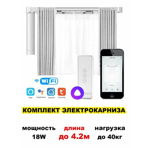 Приобретая электро карниз, в Вашем доме станет на одно умное устройство больше. Вы получаете комфортную защиту от солнечного света, которой можно управлять не вставая с дивана, а просто нажать на кнопку пульта, который идет в комплекте или дать команду голосовому помощнику. Вы можете установить таймер открытия и закрытия штор через приложение Tuya Smart или Smart Life в смартфоне и умный электрический карниз сделает все за Вас. Возможна синхронизация с голосовым помощником Алиса. А с функцией Touch to start, вы можете слегка потянуть за штору в нужную сторону, и раздвижной карниз продолжит движение автоматически. Данная комплектация металлического электрокарниза, включает в себя полный комплект его составляющих, в том числе направляющий профиль и электродвигатель. Для эксплуатации, Вам всего лишь нужно собрать все составляющие и смонтировать конструкцию. Если Вы не нашли нужную Вам длину изделия, Вы можете самостоятельно укоротить карниз, путем отрезания направляющей. Бесшумный двигатель не потревожит Вас и Ваших близких во время работы. Нагрузка на электрокарниз, весом до 40кг, позволит Вам использовать шторы любого типа. Множество вариантов управления для комфортного использования. Управляйте с помощью смартфона, голосового помощника Алиса или с помощью функции Touch to start. Постоянно поправляйте шторы для эстетичного вида? С электро карнизом Вам не придется этого делать. Установите шторы так, как Вам требуется один раз, и электрокарниз запомнит это навсегда, создавая красивый и аккуратный вид в Вашем доме. Монтаж данного электрокарниза ничем не отличается от установки классического карниза. Достаточно закрутить 10-20 саморезов (в зависимости от длины карниза), подключить двигатель и электрокарниз готов к эксплуатации. Длина сетевого провода 105 см.